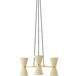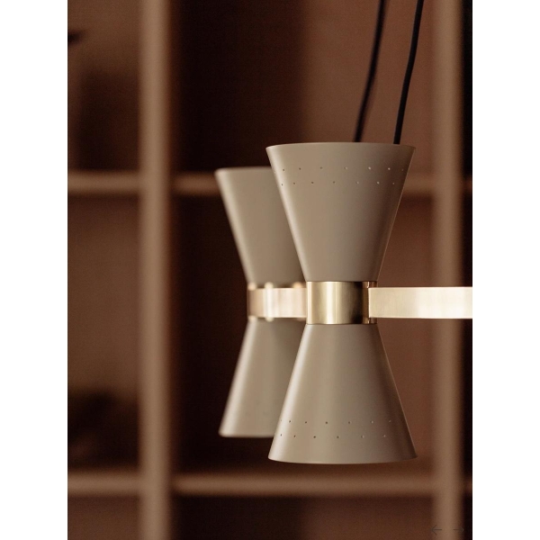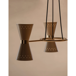 Klassista eleganssia ja graafisia muotoja yhdistävät ajattomat valaisimet on muotoiltu messingistä ja pulverimaalatusta metallista kattokruunuiksi seinälle ja kattoon.