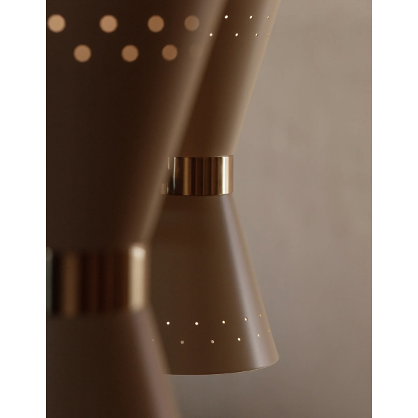 Harkitut yksityiskohdat – kuten pienet reiät jokaisessa kartiomaisessa varjostimessa, jotka luovat kauniita varjoja pinnoille – korostavat yksinkertaista, kaikkea muuta kuin tavallista muotoilua.