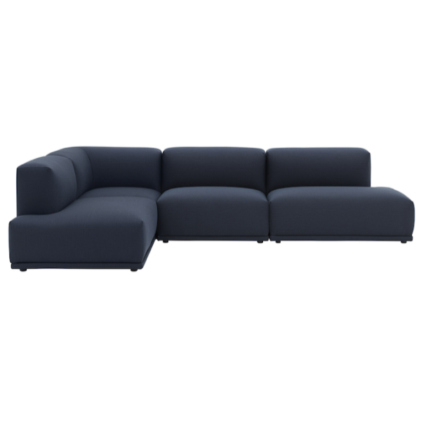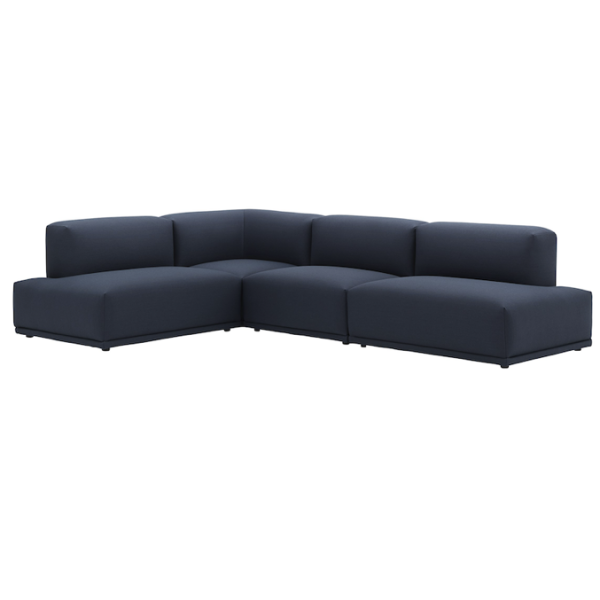 Kulmasohva koostuu neljästä moduulista, molemmissa päissä on divaani. Connect on moniosainen moduulisohvajärjestelmä, josta jokaisen on helppo koota juuri itselleen sopiva vaihtoehto. Moduuleja voi myös hyvin käyttää yksikseen.