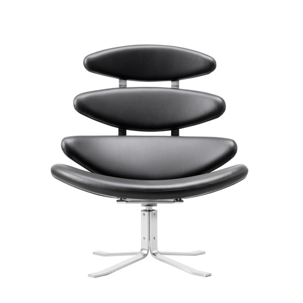 Corona Chair on katseenvangitsija ja kokeellinen ote tanskalaisesta muotoilusta. Tiukka muotoilu elliptisesti muotoillut, pehmustetut istuinpehmusteet, joiden koko on laskeva. Se on kiehtova lähestymistapa, joka haastaa perinteiset istuimet, minkä seurauksena Coronan imago design-ikonina on himoitunut kaikkialla maailmassa.