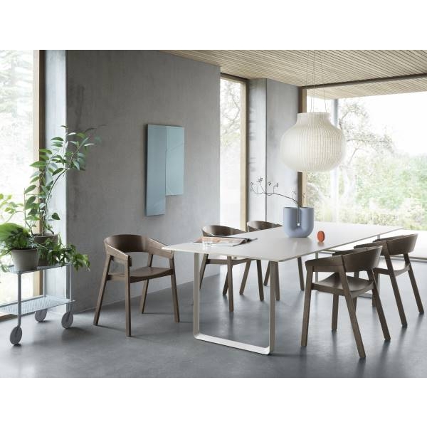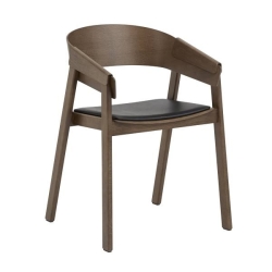Materialit: tummanruskeaksi petsattu tammi, muotoonpuristettu viilukuori, vaahtomuovipehmuste, Refine-nahkaverhoiltu istuin