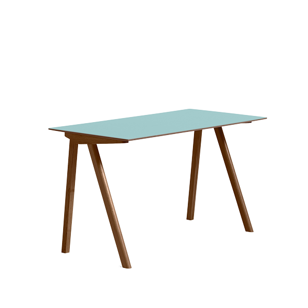 Materiaali: jalusta lakattu/ massiivipähkinä, pöytälevy 18 mm linoleum- tai pähkinäviilupintainen vaneri, vesiohenteinen puolimatta lakka