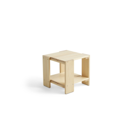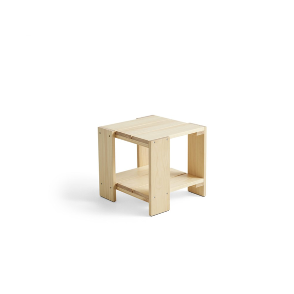 Alun perin suunniteltu hollantilaisen arkkitehdin ja suunnittelijan Gerrit Rietveldin toimesta hyödyntämään ylimääräisiä puulaatikoita vuonna 1934, Crate Collection on uudelleen julkaistu Rietveld Originals x HAY -yhteistyönä. Kunnioittaen alkuperäistä suunnittelua, Crate Lounge Chair jakaa samat tarkasti tasapainotetut suhteet ja läpinäkyvän rakenteen minimoidakseen tuotantokustannukset ja optimoidakseen kokoonpanoprosessin. Matalalla profiililla varustettu tuoli on varustettu lempeästi viettävällä selkänojalla ja istuimella sekä tukevilla käsinojilla. Tuolin yksinkertaisuus ja tilankäyttö kuvastavat suunnittelijan arkkitehtonista tyyliä, tarjoten toiminnallisuutta ja mukavuutta ottamatta liikaa tilaa. Crate Lounge Chair on valmistettu massiivipuusta, jossa on vesipohjainen lakattu viimeistely eri värivaihtoehtoissa. Se sopii monenlaisiin ulkotiloihin ja voidaan täydentää valittavissa tekstiileissä olevilla istuintyynyillä lisämukavuuden saavuttamiseksi.