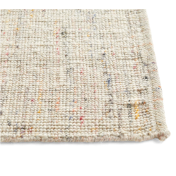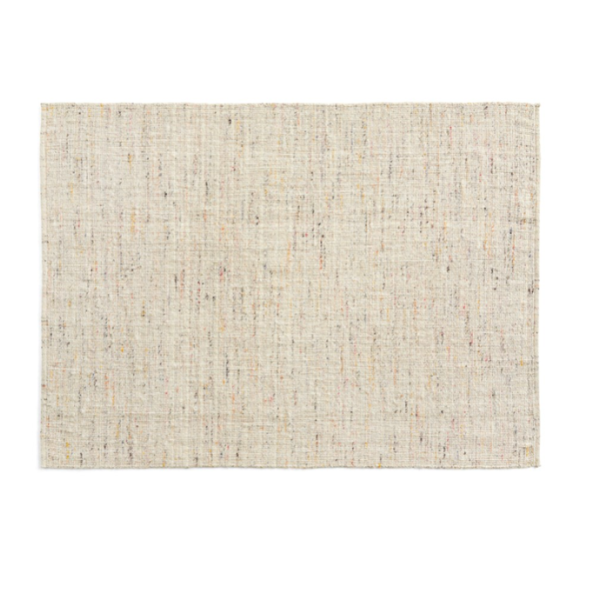 Neutraalin taustan ja pienten moniväristen pilkkujen ansiosta matto on tasapainoinen ja harmoninen olematta väritön.