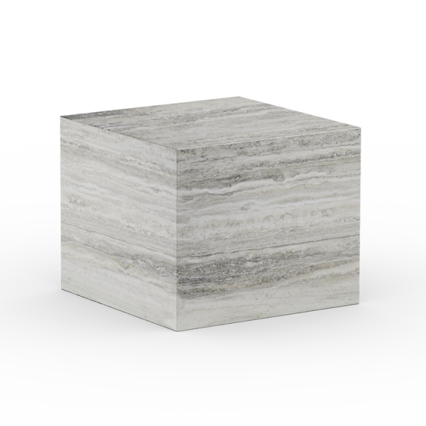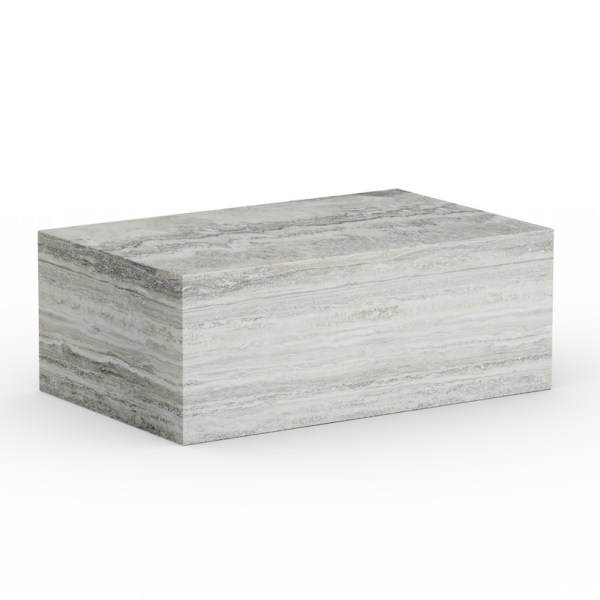 Harmaasta Travertiinikivestä valmistettu Cubism - sohvapöytä korostaa materiaalin ominaisuuksia ja kauneutta.