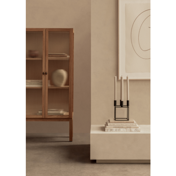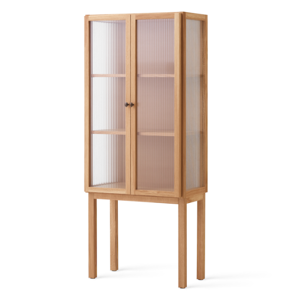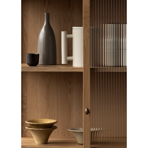 Audon Curiosity-kaappi on kaunis ja moderni versio ajattomasta huonekalusta. Se on huolellisesti valmistettu massiivitammesta perinteisiä puusepäntekniikoita käyttäen ja suunniteltu säilyttämään esineitä lähes piilossa eleganttien ruokolasiovien ansiosta, jotka häivyttävät sisällön hienovaraisesti.