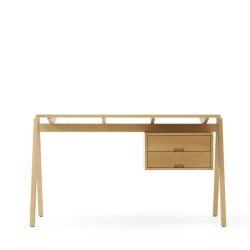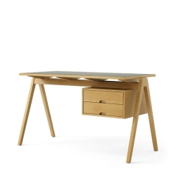 MATERIAALIT: Massiivipyökki, pyökkiviilu, Fenix Nano -laminaatti. Tätä tuotetta ei ole käsitelty biosideilla. Massiivipyökistä valmistettu runko leikataan CNC-koneella. Runko kootaan sekä liiman että kierreholkeilla varustettujen pulttien avulla. Molempien pintakäsittelyjen pöytälevy laminoidaan ja liimataan MDF-ytimen päälle. Sen jälkeen se leikataan kokoon ja reunoille liimataan massiivipuinen reunus. Laatikoiden materiaalina on pyökkiviilu ja massiivipyökki, jotka leikataan CNC-koneella ja liimataan yhteen perinteisin puutyömenetelmin.