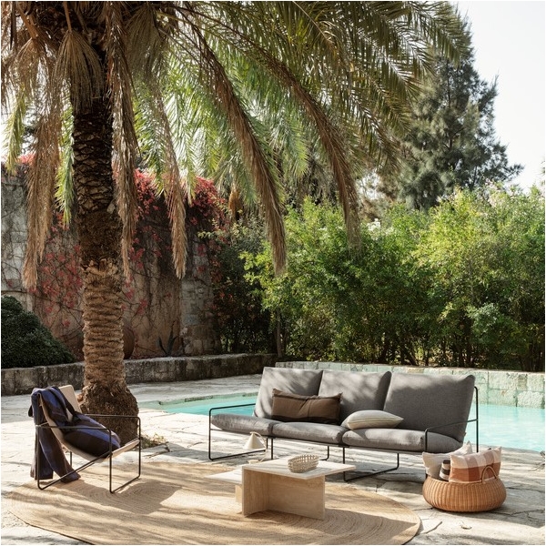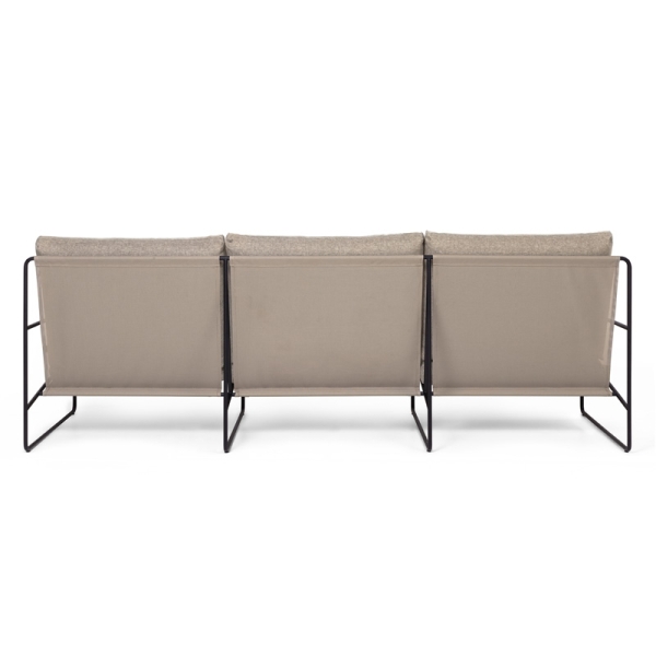 Fermliving Desert 3-seater on kolmenistuttava ulkokäyttöön suunniteltu sohva, jossa siro putkirunko yhdistyy mukavan pehmoisiin tyynyihin. Desert-sarjan istuimilla luot puutarhaan tai terassille kutsuvan oleilukeitaan auringon ottoon, kirjojen lukemiseen ja yhteisiin ajanviettoihin.
