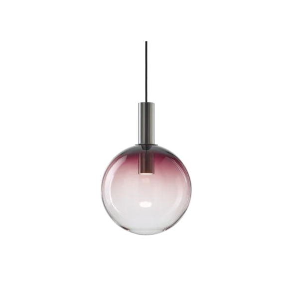 Materiaali: käsin puhallettu Plum kristallilasi, teräs, tekstiilijohto