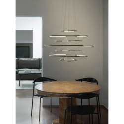 Nemo Lightingin Drop-riippuvalaisin on Arihiro Miyaken suunnittelema moderni "kattokruunu", jossa kohtaavat taidokkaasti toteutettu kerroksittainen rakenne sekä huipputason valaistustekniikka. Kauniin ilmava ja suurikokoinen, 90 cm:n leveyteen yltävä Drop 7 -valaisin rakentuu kaikkiaan seitsemästä erikokoisesta alumiinirenkaasta, jotka on kytketty toisiinsa hienovaraisen ohuin liittimin.