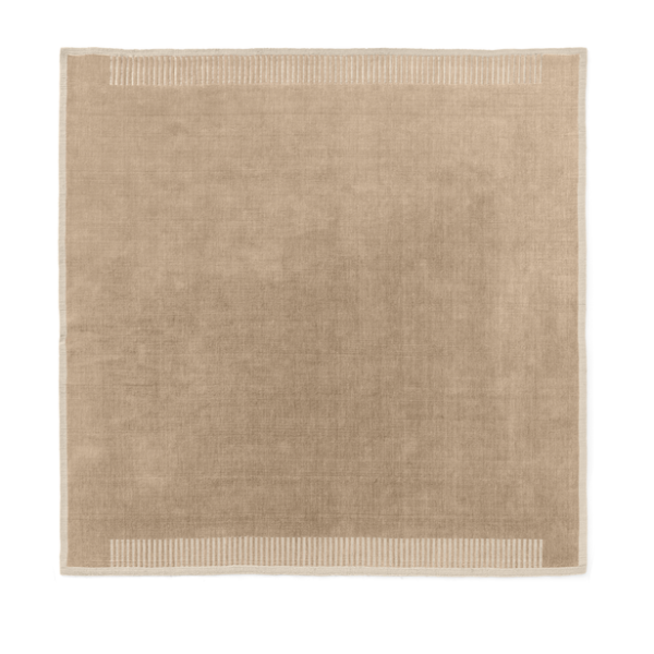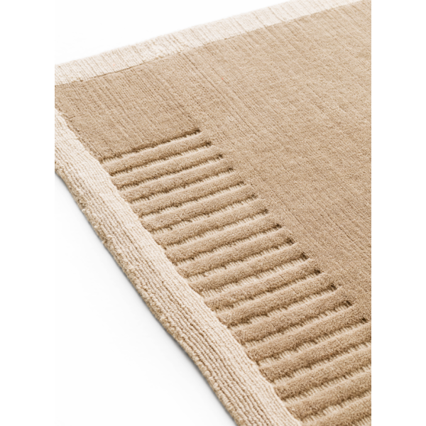 Ajattoman muotoilun hillitty sommittelu yhdistää hienostuneesti villan ja raidat, jotka vetävät katsetta puoleensa ja kehystävät mattoa.