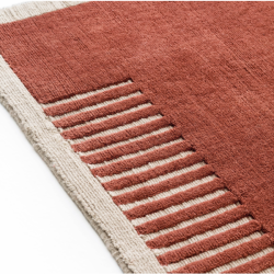 Ajattoman muotoilun hillitty sommittelu yhdistää hienostuneesti villan ja raidat, jotka vetävät katsetta puoleensa ja kehystävät mattoa.