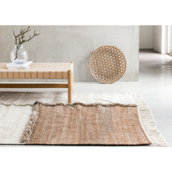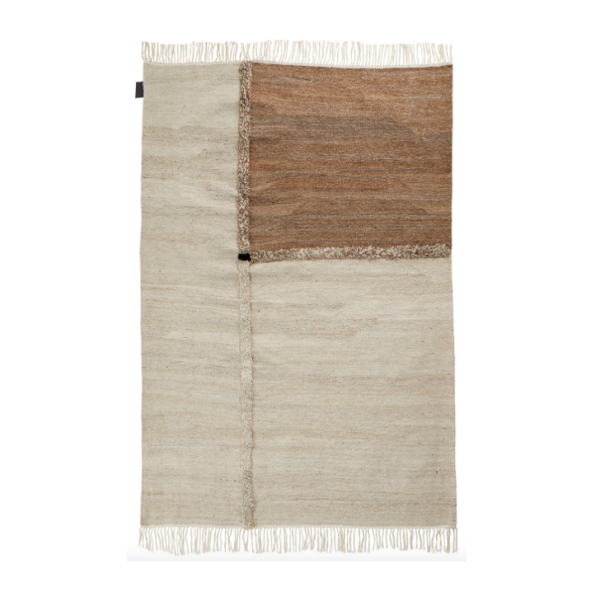 E-1027 matto on kudottu käsin luonnollisesta, värjäämättömästä ja käsittelemättömästä lampaan villasta.