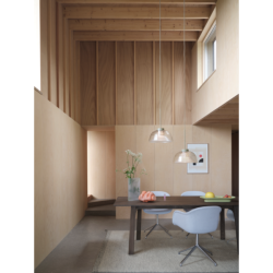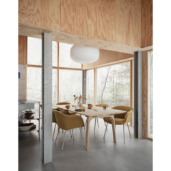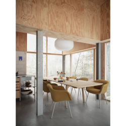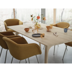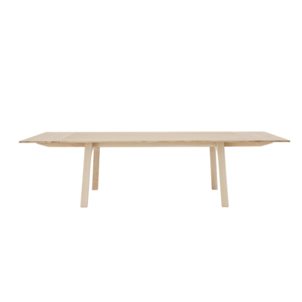 Pöytä säilyttää saman muodon jatkeena mutta jatke jättää puun syyt eri suuntaan kuin pöydän, mikä lisää ainutlaatuista ilmettä. Pöytä sopii täydellisesti yhteen kaikkien Muuto-tuolien kanssa.