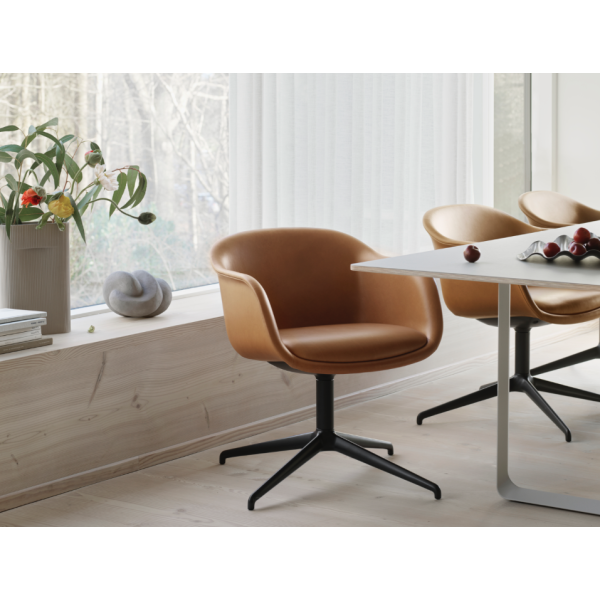 Veistoksellinen mutta erottuvan ergonominen istuin tekee Fiber Conference -nojatuolista ihanteellisen kaikkialla, missä istumme pitkiä aikoja. Sen sisäkuori on valmistettu 100 % kierrätetystä muovista, ja sen tilava istuin ja myötäilevät kaaret on kokonaan verhoiltu pehmeällä kiinteällä tyynyllä, mikä tarjoaa maksimaalisen mukavuuden niin julkisissa tiloissa kuin kotonakin.