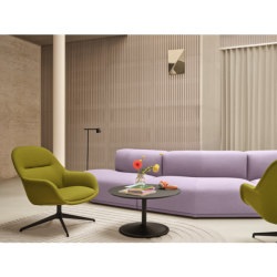 Muuton Fiber sarjan Lounge -nojatuolissa on tilava istuin ja kauniit muodot, jotka ilmentävät sarjan eleganssia pehmeämmässä ja kutsuvammassa muodossa.
