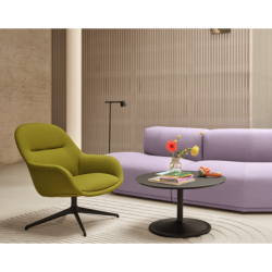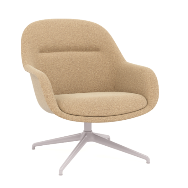 Muuton Fiber sarjan Lounge -nojatuolissa on tilava istuin ja kauniit muodot, jotka ilmentävät sarjan eleganssia pehmeämmässä ja kutsuvammassa muodossa.