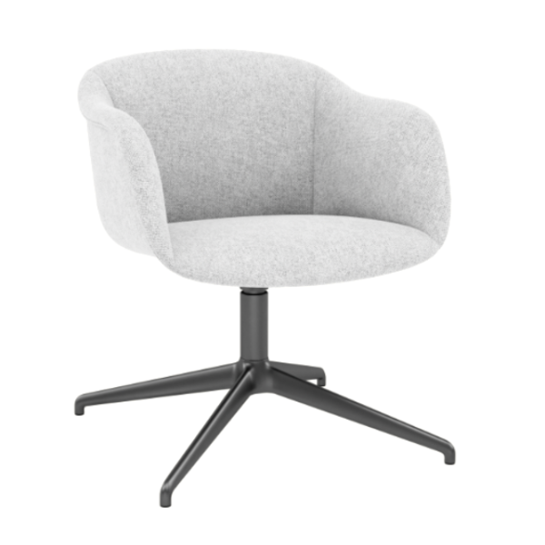 Tämä versio on pyörivä ja se palautuu alkuasentoonsa. Jalustaan voit valita myös vaaleanharmaan värin. Saatavilla on useita verhoiluvaihtoehtoja - kysy niitä suoraan liikkeestämme.