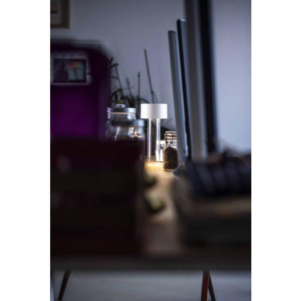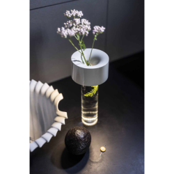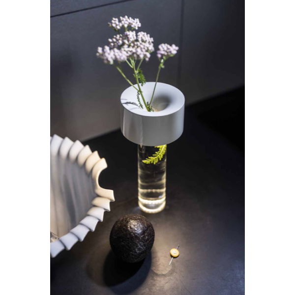 Fleur on pienikokoinen, kannettava pöytävalaisin, se on ladattava ja himmennettävä, ja säteilee valoa alaspäin. Tarpeen tullen voit käyttää Fleuria myös maljakkona ja luoda siihen omia asetelmiasi.