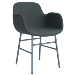 Form käsinojallisessa tuolissa siro, ilmeikäs ja graafinen teräsrunko yhdistyy mukavaan, verhoiltuun istuinosaan.