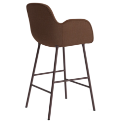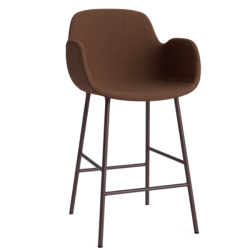 Form käsinojallisessa baarituolissa tuolissa siro, ilmeikäs ja graafinen teräsrunko yhdistyy verhoiltuun istuinosaan ja käsinojat tuovat kokonaisuuteen lisää mukavuutta.