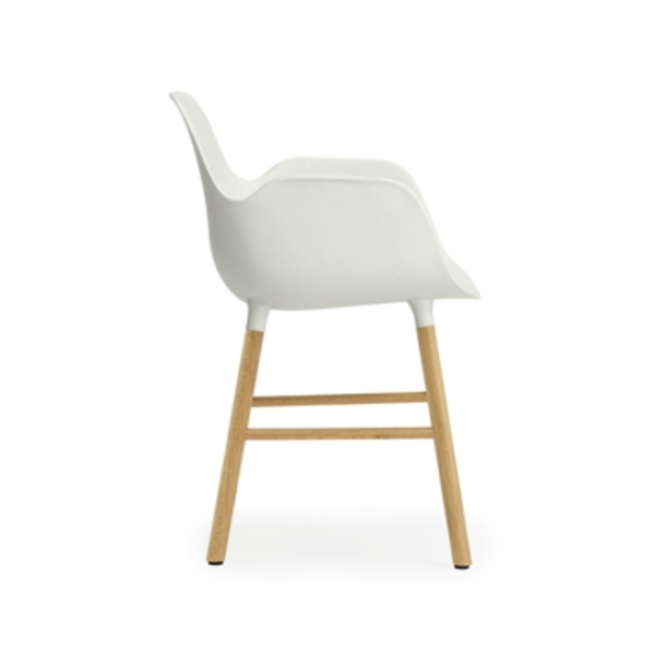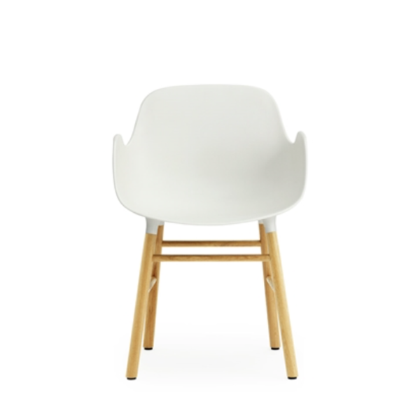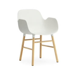 Form käsinojallisessa tuolissa kaunis tammipuinen runko yhdistyy käyttökelpoiseen muovi-istuinosaan. Saatavilla kuusi toimivaa värivaihtoehtoa: valkoinen, tummanvihreä, harmaa, musta, ruosteenpunainen ja harmaansininen.