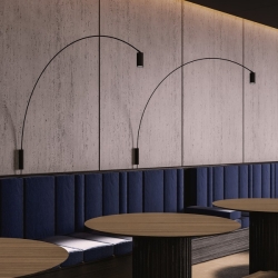 Fox Wall on upean minimalistinen seinävalaisin, jonka ilmettä määrittävät sirot, puhtaat linjat. Valaisimen kaartuva ja kapea varsi tarjoaa ulottuvaa kohdevaloa haluttuun kohteeseen. Fox Wall on uudempi sisarustuote Bernhard Osannin Fox-lattiavalaisimelle.