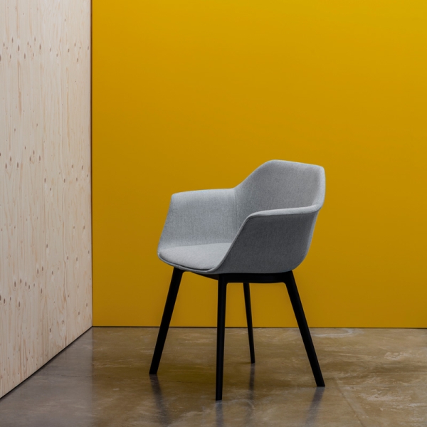 Gala Chair on verhoiltu, käsinojallinen ruokailutuoli, jossa on harmonisen miellyttävä muotoilu.