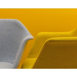 Materiaali: ECO thermopolymeeri, taivutettu teräsputkijalka, paloturvallinen polyuretaanivaahto, kangasverhoilu, polypropyleenitassut