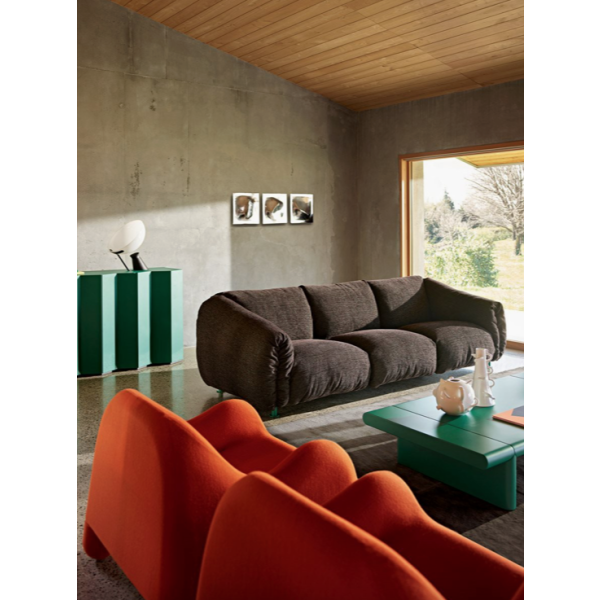 Materiaali: Monikerroksinen puurunko, jossa joustavat nauharipustukset ja massiivipyökkiä olevat jalat. Irrotettava polyuretaanivaahtoverhoilu, jossa on kasvipohjaisia polyöljyjä. Liimaton kokoonpano. Irrotettava kangaspäällinen, verhoilut Terso, Teatro ja Quantum