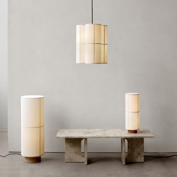 Hienostuneen minimalistinen Hashira-valaisinsarja on saanut muotokielensä geometrisesta arkkitehtuurista sekä japanilaisista paperilyhdyistä. Hashira-nimi tuleekin japaninkielen pilaria ja pylvästä tarkoittavasta sanasta. Kapea, sylinterinmuotoinen valaisin luo ympärilleen pehmeää valoa, joka suodattuu kauniisti varjostimen pellavakankaan läpi. Pellavan eläväinen pinta, ja sen läpi kuultava tukirakenne tuovat valaisimen niukkaan ilmeeseen kiinnostavuutta.