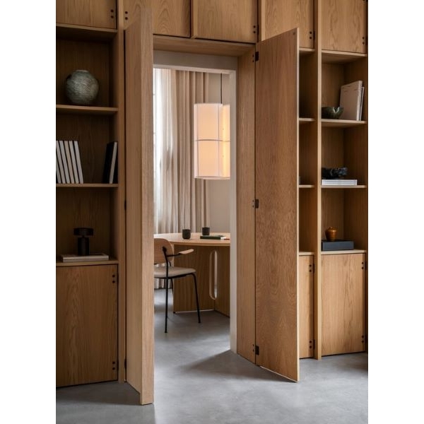 Hienostuneen minimalistinen Hashira-valaisinsarja on saanut muotokielensä geometrisesta arkkitehtuurista sekä japanilaisista paperilyhdyistä. Hashira-nimi tuleekin japaninkielen pilaria ja pylvästä tarkoittavasta sanasta. Kapea, sylinterinmuotoinen valaisin luo ympärilleen pehmeää valoa, joka suodattuu kauniisti varjostimen pellavakankaan läpi. Pellavan eläväinen pinta, ja sen läpi kuultava tukirakenne tuovat valaisimen niukkaan ilmeeseen kiinnostavuutta.
