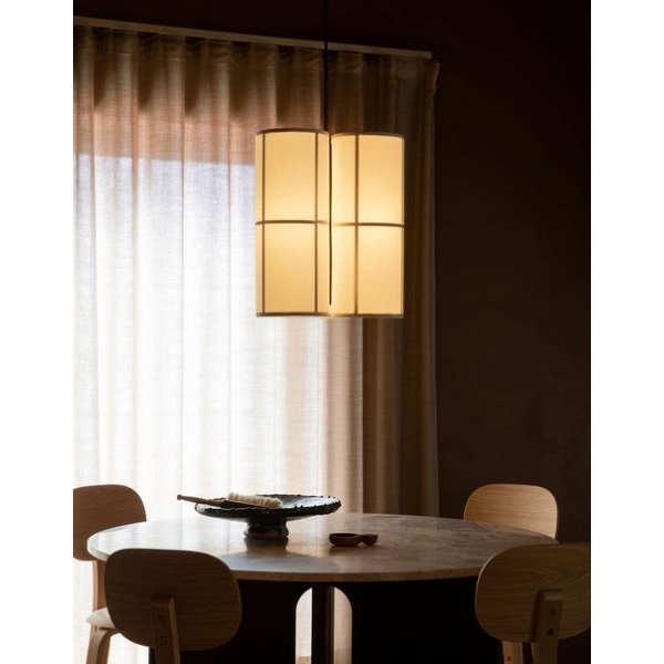 Hienostuneen minimalistinen Hashira-valaisinsarja on saanut muotokielensä geometrisesta arkkitehtuurista sekä japanilaisista paperilyhdyistä. Hashira-nimi tuleekin japaninkielen pilaria ja pylvästä tarkoittavasta sanasta. Kapea, sylinterinmuotoinen valaisin luo ympärilleen pehmeää valoa, joka suodattuu kauniisti varjostimen pellavakankaan läpi. Pellavan eläväinen pinta, ja sen läpi kuultava tukirakenne tuovat valaisimen niukkaan ilmeeseen kiinnostavuutta.