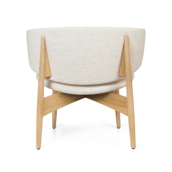 Puujalkainen Herman-nojatuoli henkii ajatonta ylellisyyttä, jolle boucle-verhoilu antaa viime silauksen. Istuinmukavuus on tuolissa otettu huomioon kaartuvalla istuinosalla ja leveämmällä selkänojalla, joka toimii samalla myös käsinojana.