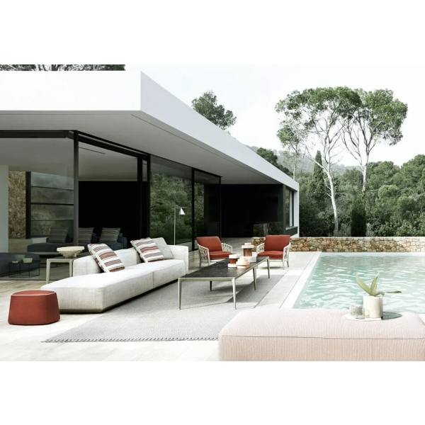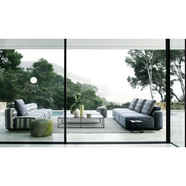 Hybrid Outdoor sohva on niin visuaaliselta olemukseltaan kuin mukavuudeltaan hybridi, joka sopii niin sisä- kuin ulkotiloihin. Se tarjoaa ulkosohvana saman istuinmukavuuden ja laadun, joka on aina ollut tunnusomaista B&B Italian olohuonekalusteille. Hybrid sohva on omiaan tiloihin, joissa sisätilat jatkuvat saumattomasti ulos terassille tai pihalle. Modulaarisen Hybrid -sohvan moduuleista voi rakentaa loputtoman määrän erilaisia kokoonpanoja. Hybrid sohva näyttää kuin leijuvan matalan metallirunkonsa päällä.