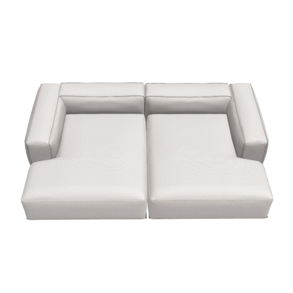 Tämä verkkokauppamme kokonaisuus koostuu kahdesta 144 cm syvästä divaanimoduulista (Chaise Longue Left + Chaise Loungue Right), joiden käsi- ja selkänojat ovat 59 cm korkeat. Selkä- ja käsinojatyynyjen korkeuden voi valita kahdesta vaihtoehdosta: joko tämän 59 cm tai 68 cm korkean. Kokonaisuutta voi halutessaan täydentää irrallisilla heittotyynyillä.