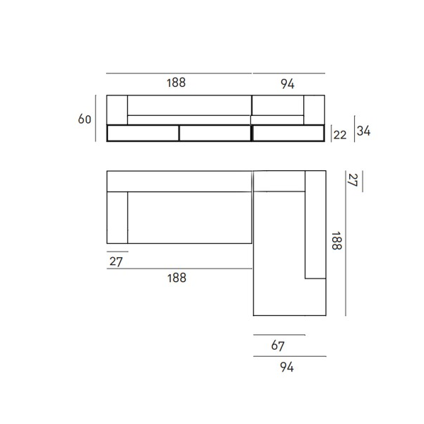 Mitat: osa 2ILT188: SX/ vasen käsinoja/korkeus 66 cm, leveys 215 cm, syvyys 94 cm, istuinsyvyys 66 cm, istuinkorkeus 37 cm