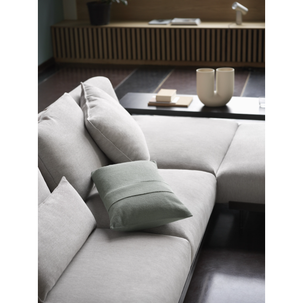 Myös sohvaan kuuluvat irtotyynyt ovat vapaasti valittavissa -joko otat niitä tai et, Muuto kuitenkin suosittelee ainakin joidenkin irtotyynyjen lisäämistä aina kokonaisuuksiin. Voit myös aina valita sohvaasi verhoilultaan erivärisiä tai materiaaliltaan toisenlaisia tyynyjä.