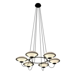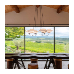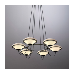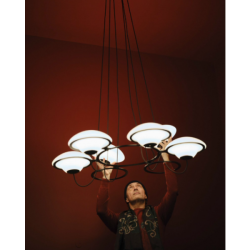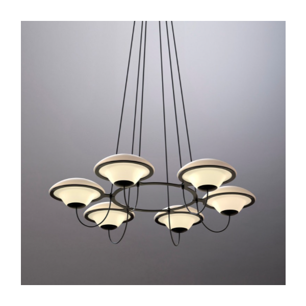 Douglas Montin suunnittelema kattokruunu In The Air "UFO-kaltaisilla" valoilla yhdistelee vanhaa ja uutta - retrofuturistinen fantasia kohtaa valaisimessa toimivalla tavalla perinteikkään, herkän ja koristeellisenkin muotokielen joka vie ajatukset myös menneeseen.