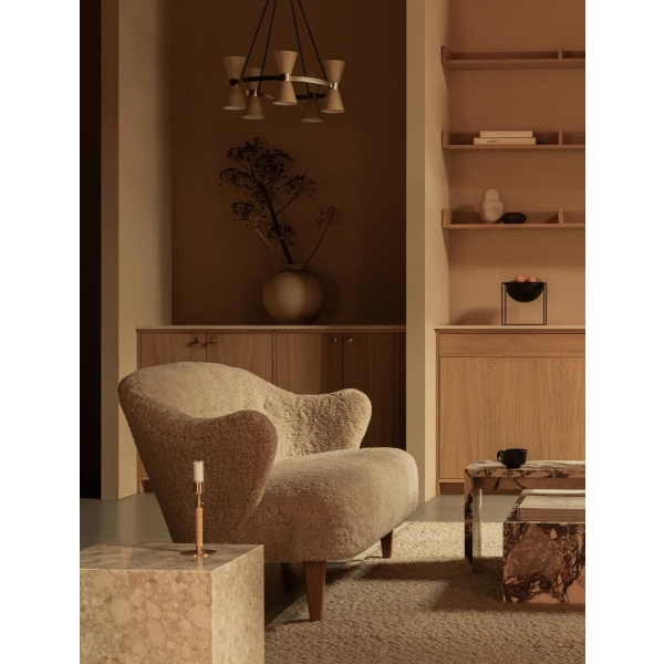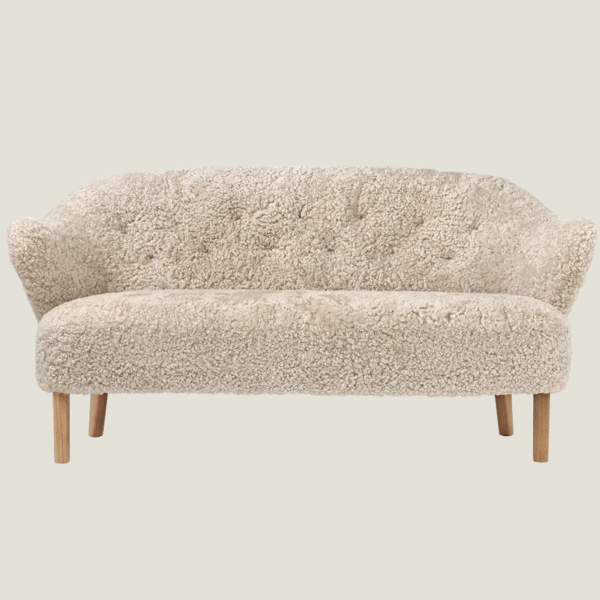 Saman ilmeen omaavat Ingeborg nojatuoli, ja yhdessä nämä kaksi mallia luovat mukavan ja syleilevän kaksikon mihin tahansa moderniin asuintilaan. Ingeborg-sohva on saatavana useilla kauniilla verhoilukankailla verkkokauppamme lampaantaljan lisäksi. Jalat ovat saatavilla aina joko tammesta tai savu-tammesta.