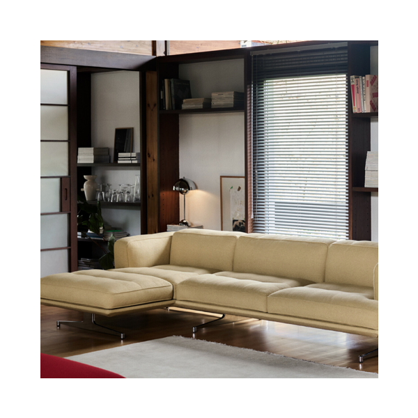 Tätä divaanillista versiota on saatavilla myös mustilla alumiinijaloilla ja versiona Right- tilaa sellainen suoraan liikkeestämme. Myös verhoilua on saatavilla useassa sävyssä ja materiaalissa.
