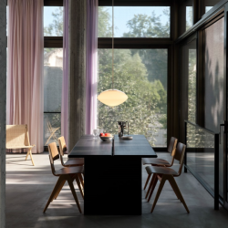Yksinkertaisen kauniissa Ita-ruokapöydässä on kaksi yksittäistä lankkua leveiden puujalkojen päällä ja se on toimiva esimerkki rakennetusta minimalismista. Skandinaavista ja japanilaista muotoilufilosofiaa yhdistävä pöytä on yksinkertainen mutta tyylikäs.