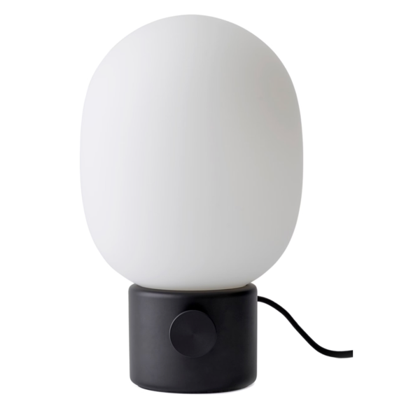 Herkän, pyöreän lasin ja tukevan metallijalustan kontrasti luo tasapainoisen ja kiehtovan siluetin. Toimiva ja kaunis yksityiskohta on valaisimen himmennin. Valaisimen koko on juuri sopiva monipuolisesti kodin tiloihin ja se antaa kauniin ja hyvän valon jopa työpöydille.