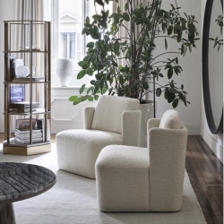 Keetonin kutsuva istuin, kevyt mutta tukeva rakenne sekä pehmusteen tarkoin valitut mittasuhteet tekevät siitä täydellisen lisän niin olohuoneeseen kuin lounge-tilaan. Nojatuolin pyöristetyt muodot ja korkealuokkainen verhoilu korostavat pehmeyden ja graafisen selkeyden välistä tasapainoa.