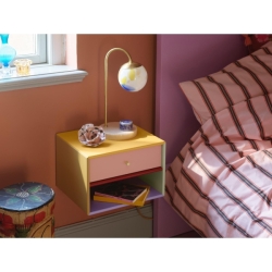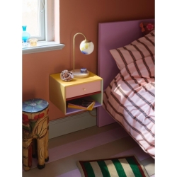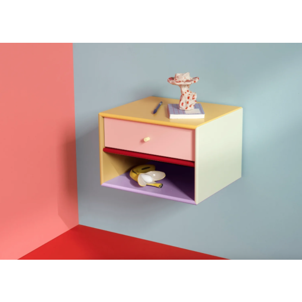 Seinään kiinnitettävä ja monipuolinen KIMPOP DASH -yöpöytä on yhtä ihastuttava kuin jäätelö kuumana kesäpäivänä. Yhden laatikon ja leikkisän muotoilun ansiosta se sopii täydellisesti välttämättömien tavaroiden säilyttämiseen yöllä tai iloiseksi hyllyksi eteiseen.