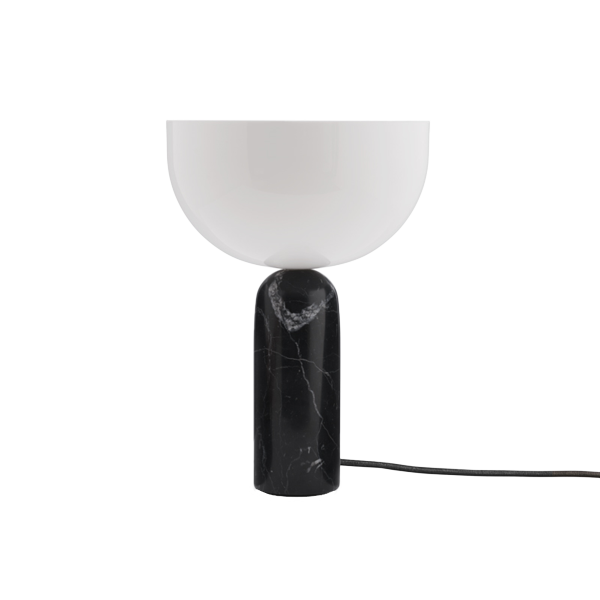 Värit: musta marmorirunko, valkoinen akryylivarjostin, musta johto
