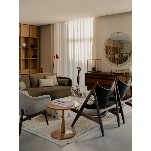 Tuolin diagonaali linjakkuus ja laadukkaat materiaalit kestävät aikaa ja istuvat kauniisti moderniin ympäristöön tuoden siihen lämpöä ja tanskalaiselle suunnittelulle niin tyypillistä hienostunutta puunkäsittelytaitoa sekä materiaalien ja muotojen yhteispeliä.