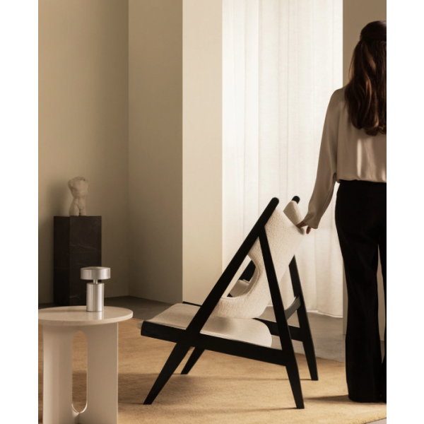 Tuolin diagonaali linjakkuus ja laadukkaat materiaalit kestävät aikaa ja istuvat kauniisti moderniin ympäristöön tuoden siihen lämpöä ja tanskalaiselle suunnittelulle niin tyypillistä hienostunutta puunkäsittelytaitoa sekä materiaalien ja muotojen yhteispeliä.