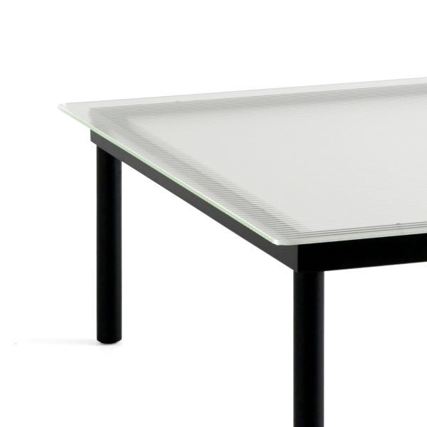 Pöydän rungossa käytettävä puu on FSC-sertifioitua, vesilakattua massiivipuuta, ja pöytälevy karkaistua lasia.
