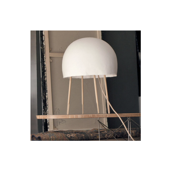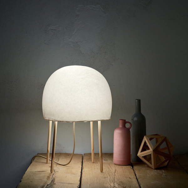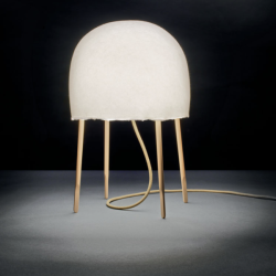 Kurage - meduusa japaniksi - on nimensä oloinen valaisin. Japanilaisuus myös näkyy ilmeessä kauniina ja runollisen herkkänä materiaaleissa ja minimalistisessa muotokielessä. Valaisimen jalat ovat saarnia, meduusamaisen valokuvun materiaalina toimii taas japanilainen washipaperi.